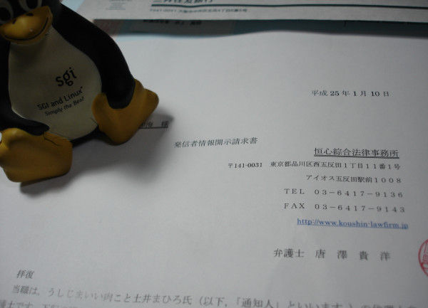うしじまがセルフ開示した発信者情報開示請求書*5。名前の部分が隠されている。 ふたば保管庫管理人が開示した発信者情報開示請求書。名前の部分が晒されている。